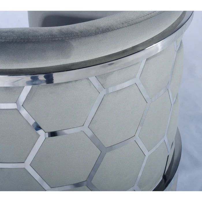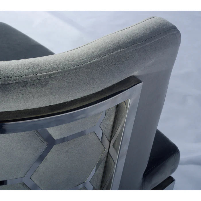 • Soft grey velvet upholstery with a smooth finish