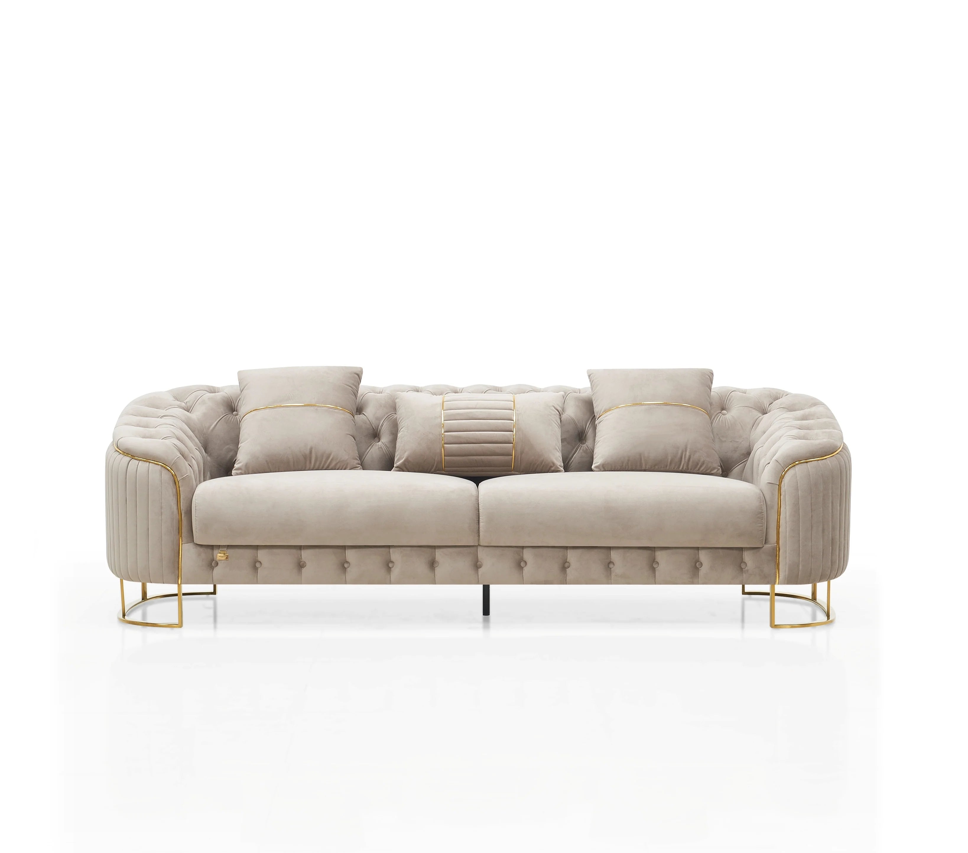 You want a sofa set that feels luxurious and looks refined. The Royal velvet modern sofa set suits Sydney homes, apartments, and formal living rooms. The soft velvet upholstery creates a rich, inviting feel. Gold accent details add a polished modern finish.